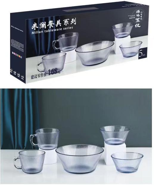 ガラスボウル食器セット家庭用カラーオークガラス食器6点セット広告プレゼント