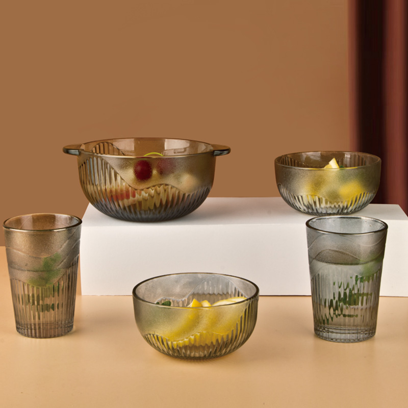 加佳プレゼント8点セット縦紋ガラスセット家庭用コップサラダボウル食器ガラスボウルプレゼント