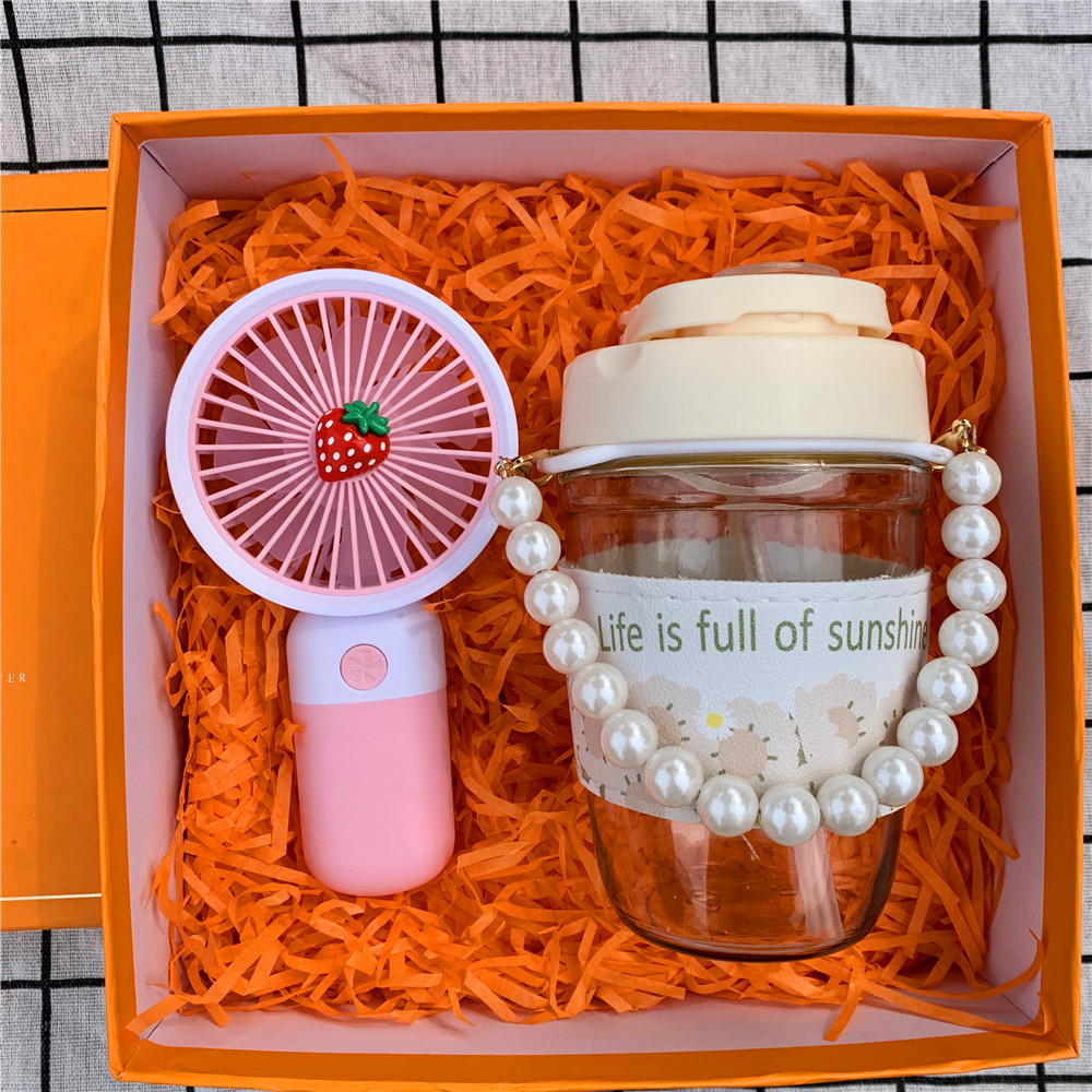 パールチェーンガラスガールハートダブルドリンクポータブルストローカップファンカップ傘組み合わせセットギフト