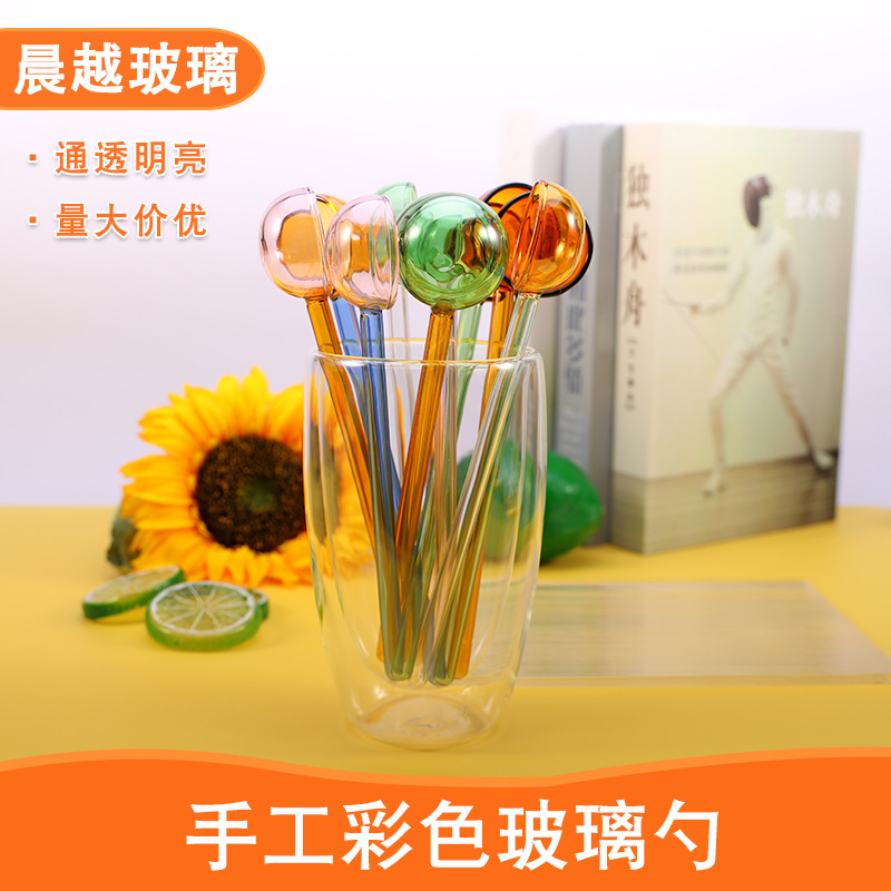 クリエイティブミルクデザートスプーンカラー田園透明耐高温ガラススプーンかわいい長柄コーヒー攪拌スプーン