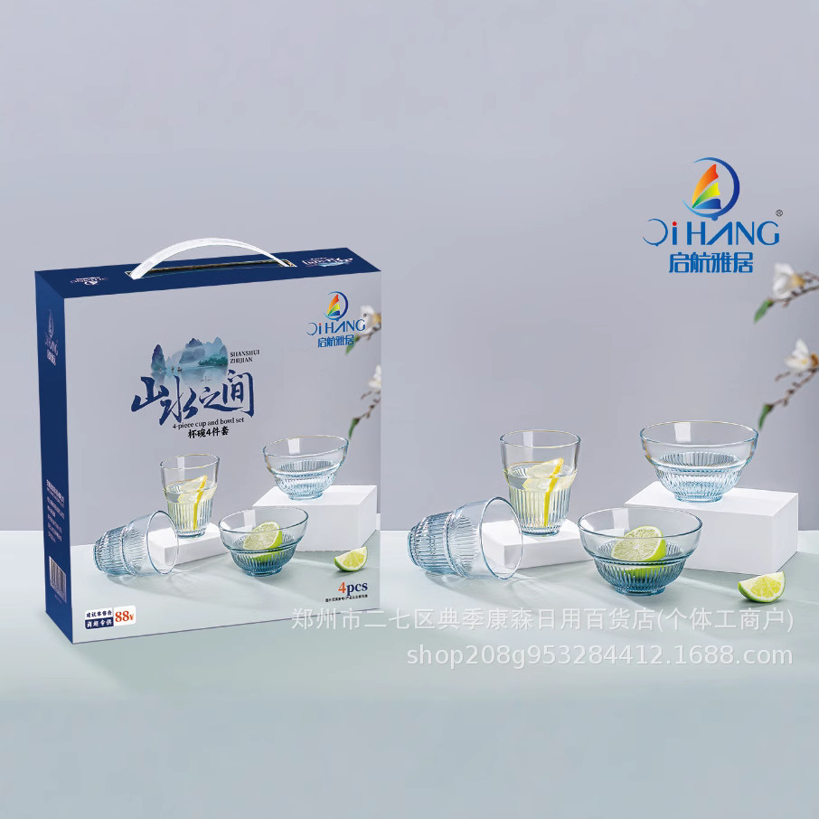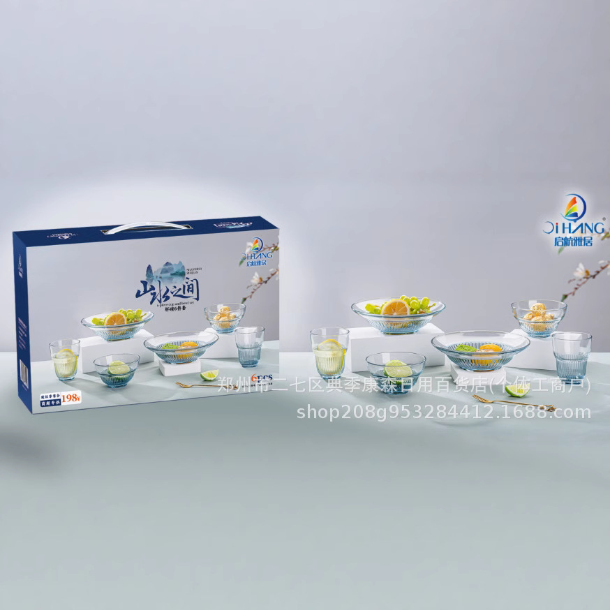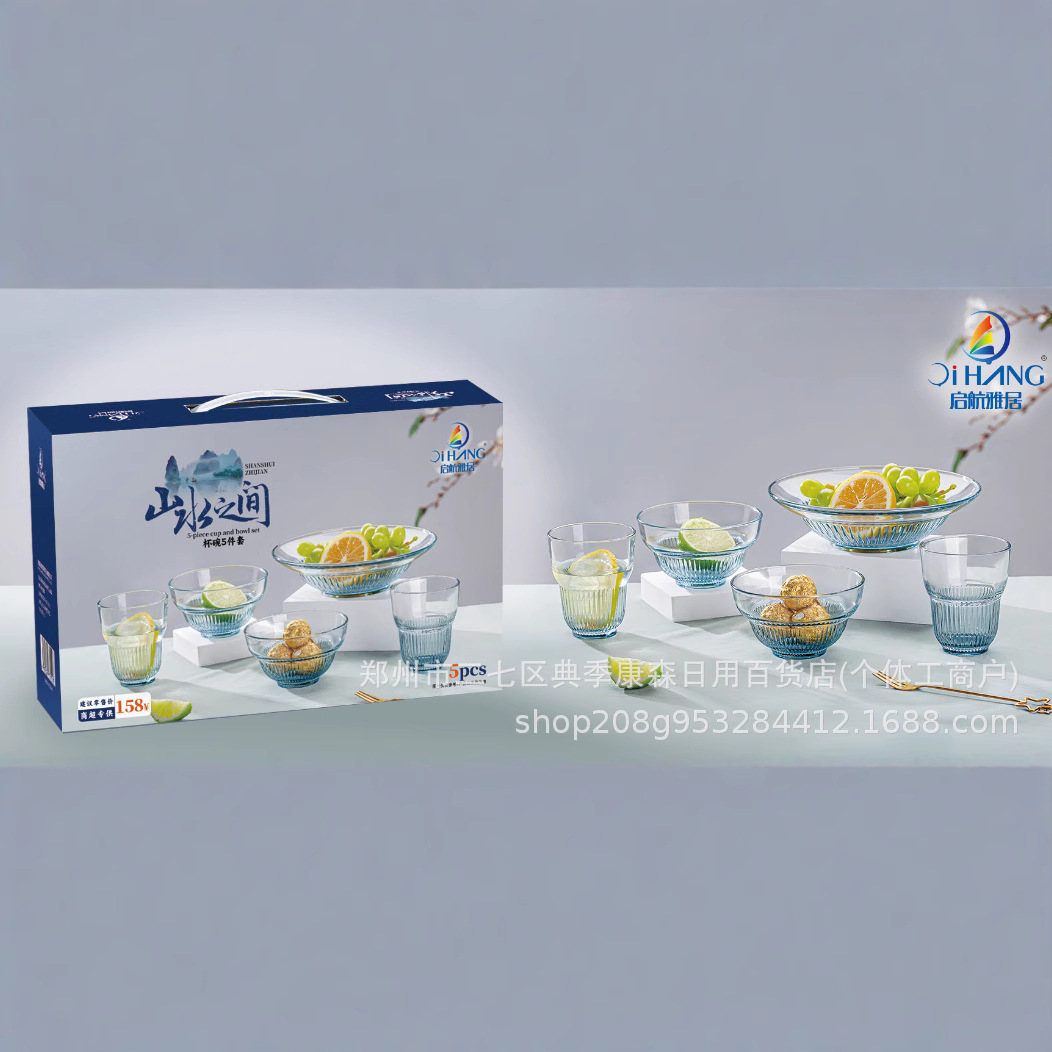 山水間カップとボウル5点セット家庭用フルーツと野菜プレート食器ガラスボウルセット会社イベントギフトセット