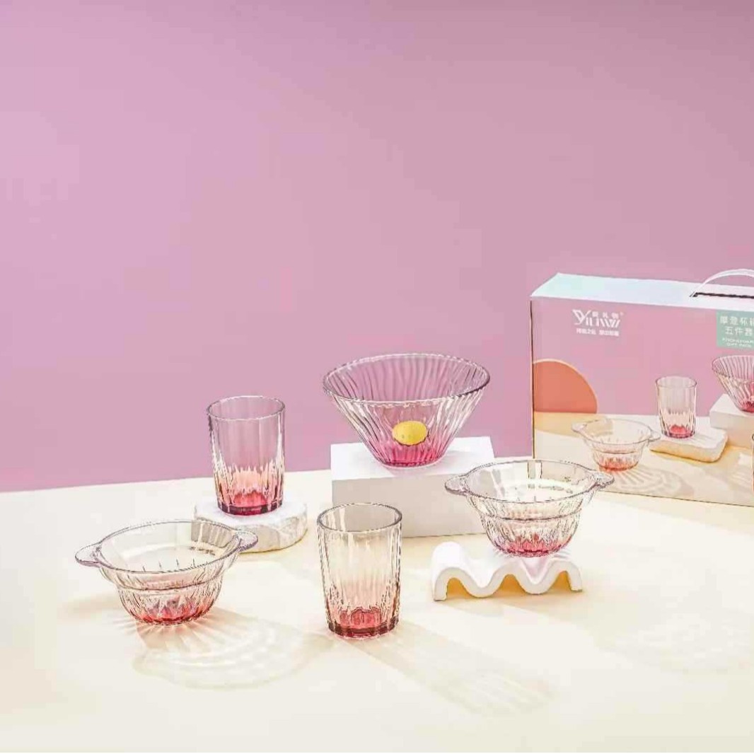 ギフト モダン カップとボウル 5 点セット クリエイティブ ファッション ガラス食器セット 開店イベント 福祉ギフト