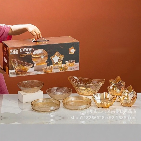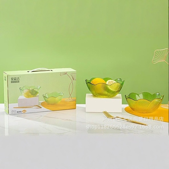 Haosen Huocuiyun ガラスボウルセットホームライト高級サラダボウルフルーツプレートセットイベントギフト卸売