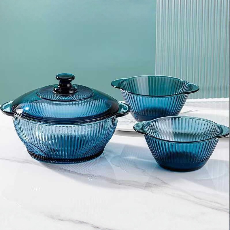 楽唯詩墨藍縦紋鍋三点セットMLSWB/L3創意軽豪華家庭用スープ碗はプレゼント卸売りにサインします。
