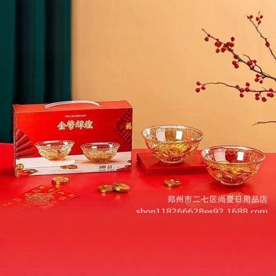 Qihang Yajiu ゴールドコインブリリアントツーピースクリエイティブガラスボウルセットビジネスイベントサインインギフト店舗ギフト卸売
