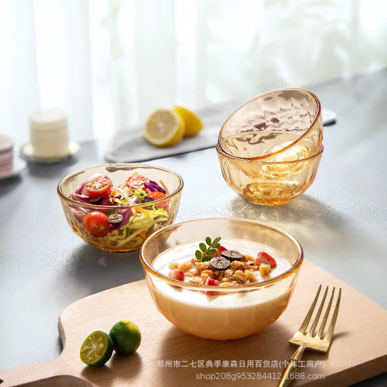 電子レンジ対応ガラスボウル、透明ガラスボウル、耐熱フルーツサラダボウル、インスタントラーメンボウル、強化ガラスボウル