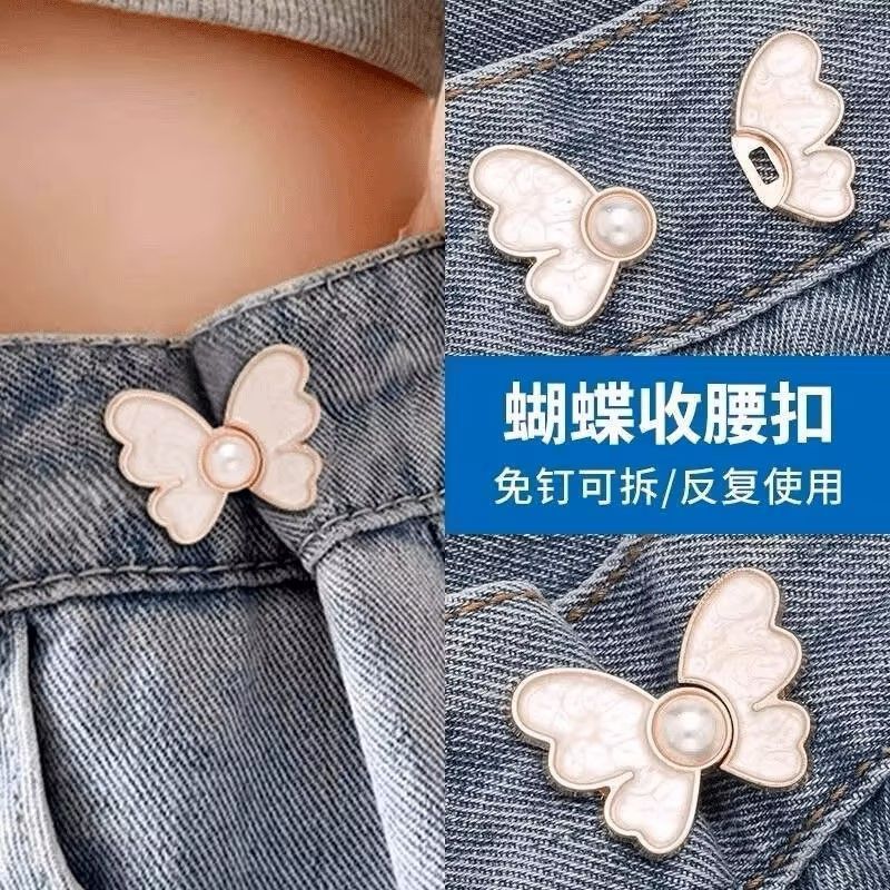 【4枚で1枚】Xiaoxiangfeng ファッション ミニ気質蝶ウエストバックル 穴あけなしスカート ウエストを小さくする