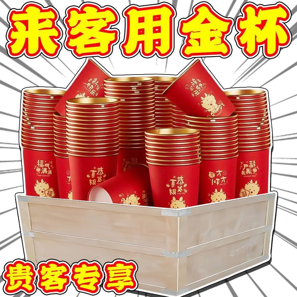 2025年蛇年金箔紙コップ使い捨てコップ赤厚手硬水コップ文創他文化用品