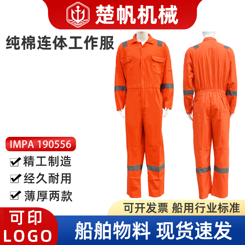 純綿ワンピース作業服スーツメンズ厚みのある耐摩耗性労働保護クルー長袖オレンジ作業服春、秋、夏