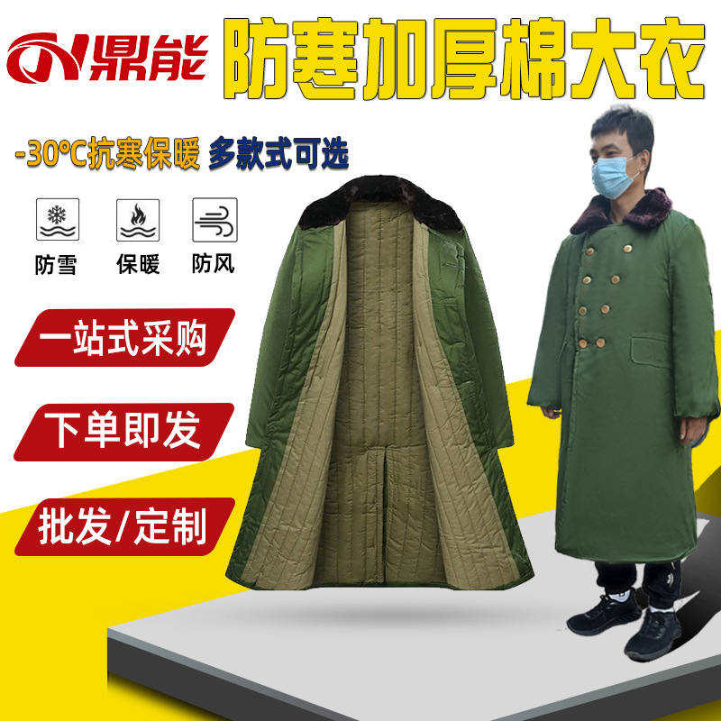 卸売冬ロングミリタリーコート男性と女性の防寒防風プラスベルベット肥厚暖かい綿コート労働保険災害救助綿コート