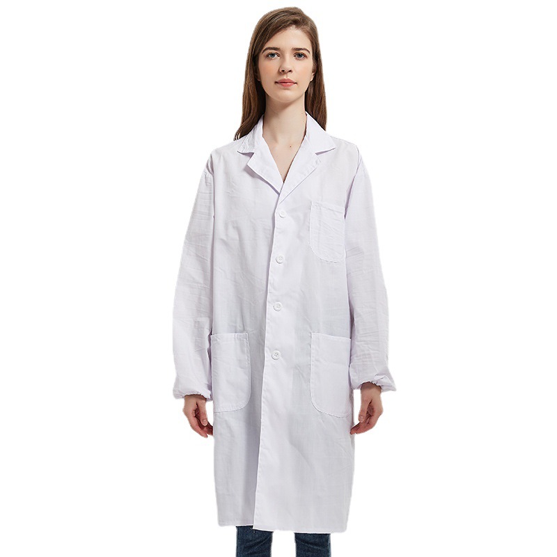 白衣長袖医師服成人厚手作業服コートツイルロング大学実験服病院食堂