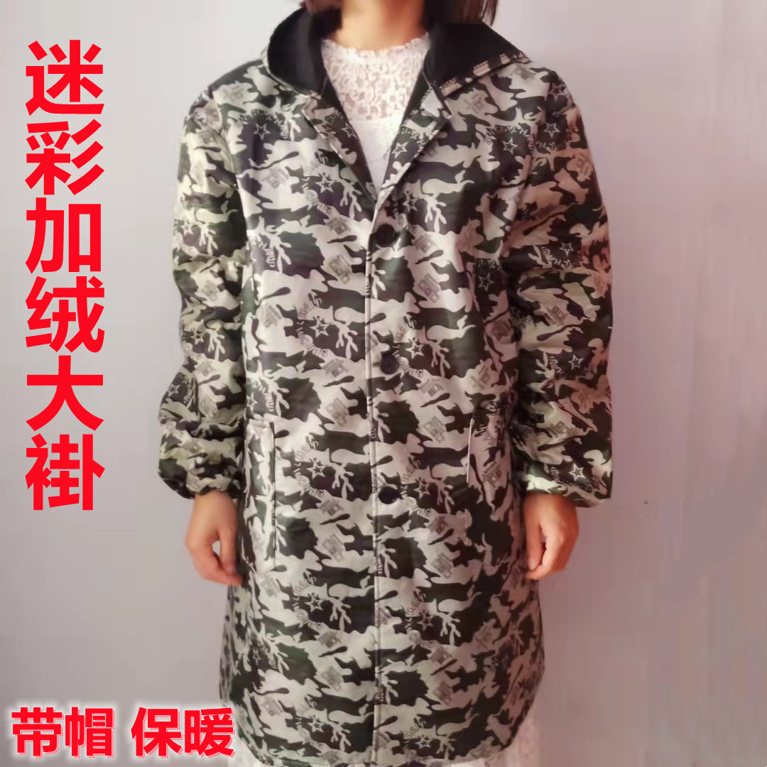 新しいベルベットは秋冬の春の男性女性の迷彩作業服長袖防水エプロン防塵カバーのコートを厚くした