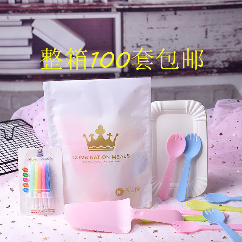 使い捨てケーキナイフフォークセット四合一皿フォークセットステンレスナイフフォーク誕生日食器ロゴ