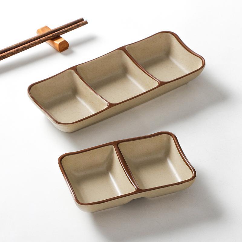 メラミン食器、模造磁器、レトロ業務用二格子、三格子味皿、磁器小物ディップ皿、調味料皿、醤油酢皿