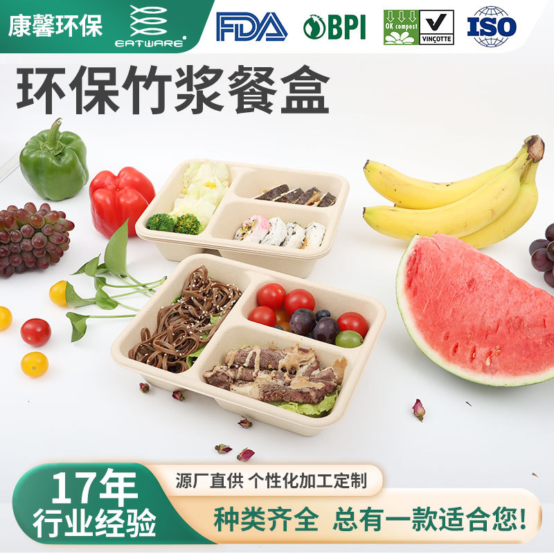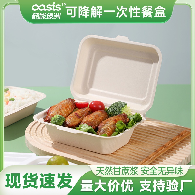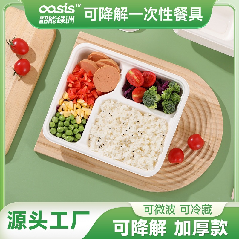 韶能オアシスサトウキビパルプ竹パルプ使い捨て環境保護食器分体三格シリーズ分解可能なコンポスト