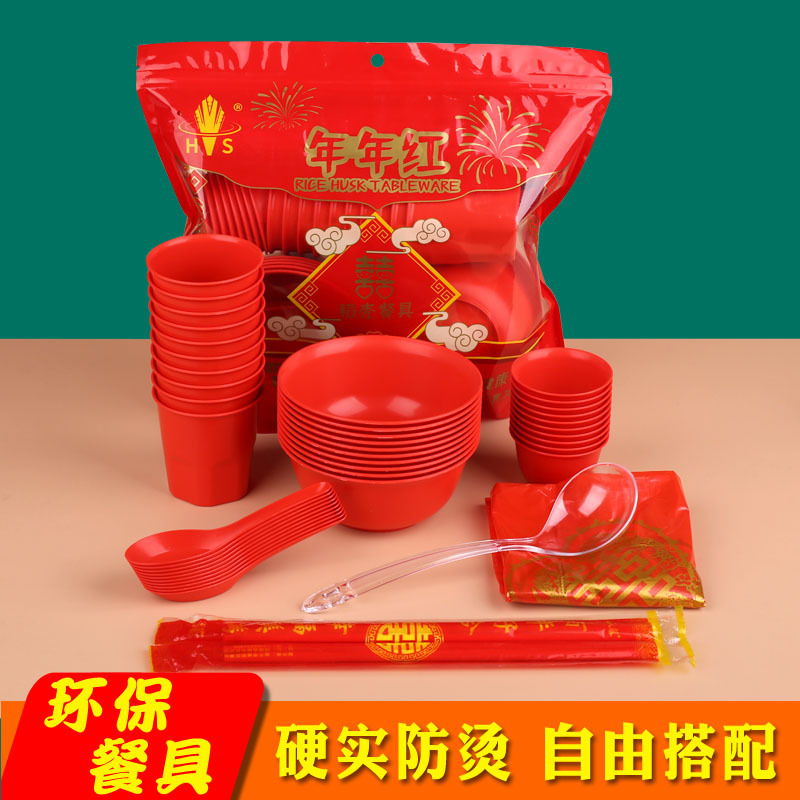 使い捨て籾殻食器年越しパーティー3点セット食器箸杯スプーンセット皿皿は高温食品級を厚くする