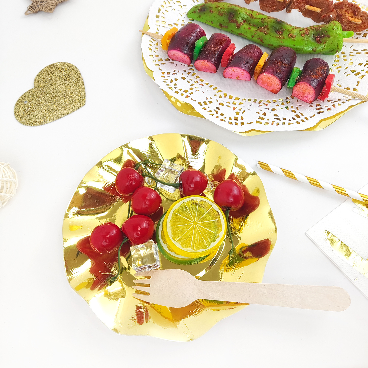 クロスボーダー8個入り8インチ使い捨て紙皿箔押し食器セット結婚式誕生日ケーキ皿パーティーピクニック皿