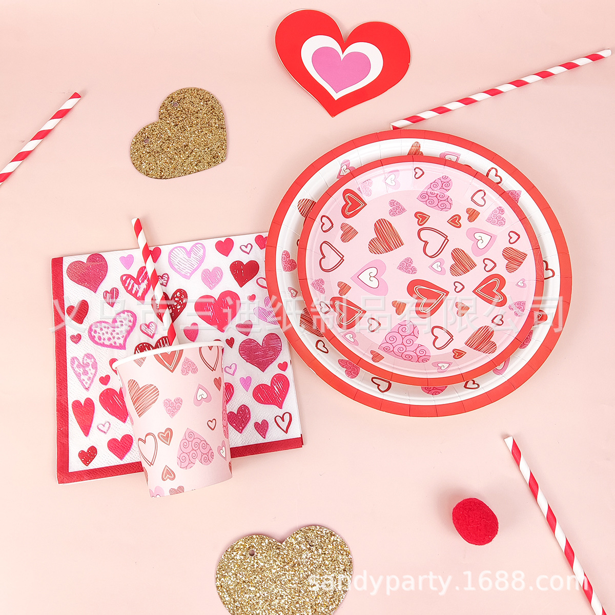 纸使い舍てバレンタインパーティー食器ウェディングハートラブパーティー用品ナイフフォークスプーン食器セット