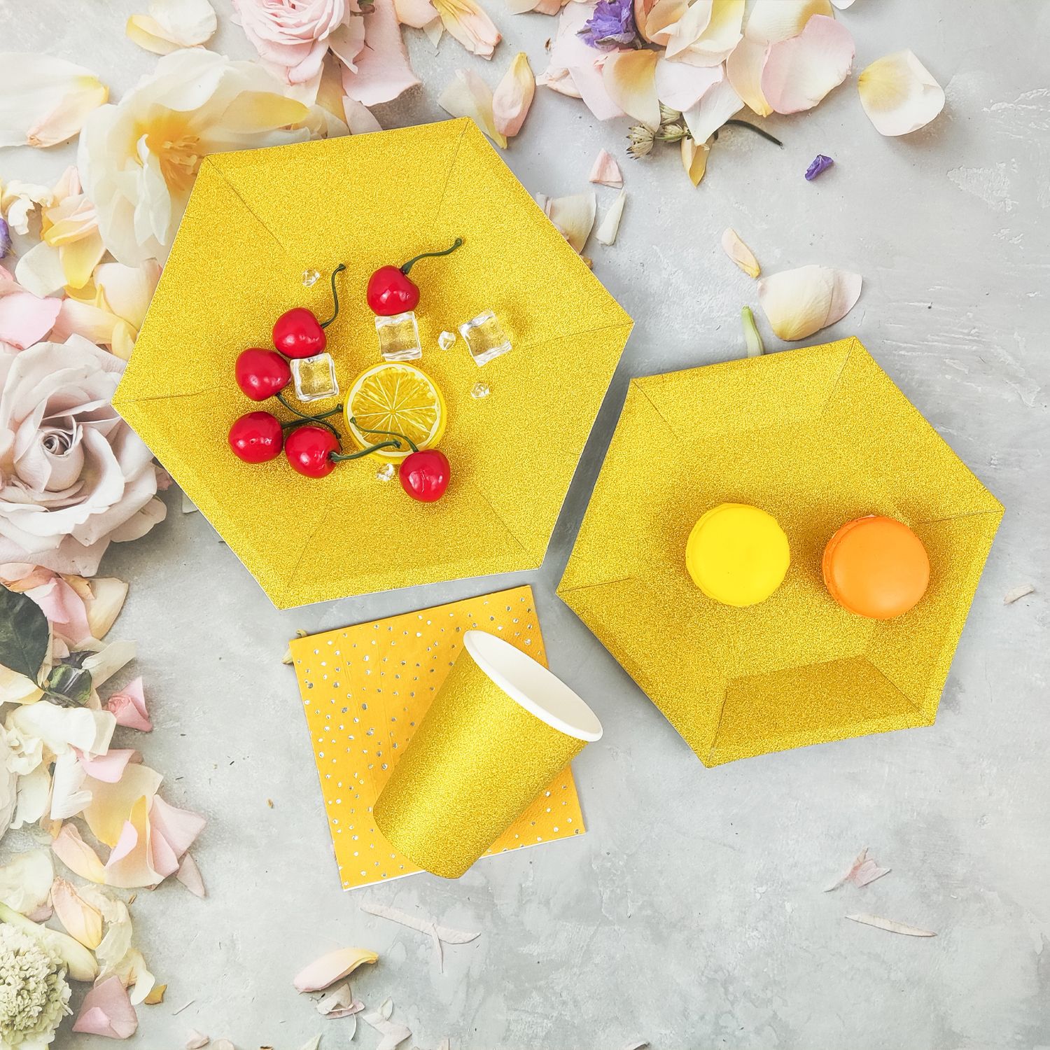 新年金属黄色セット使い捨て紙皿フロスト黄色パーティー紙食器紙皿紙コップティッシュ