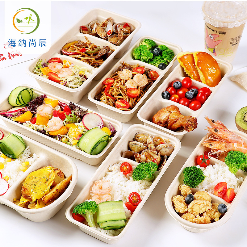 使い捨てサトウキビパルプ弁当箱軽食包装弁当箱三格長方形食器分格弁当箱