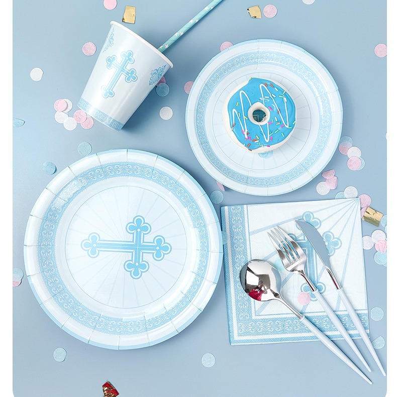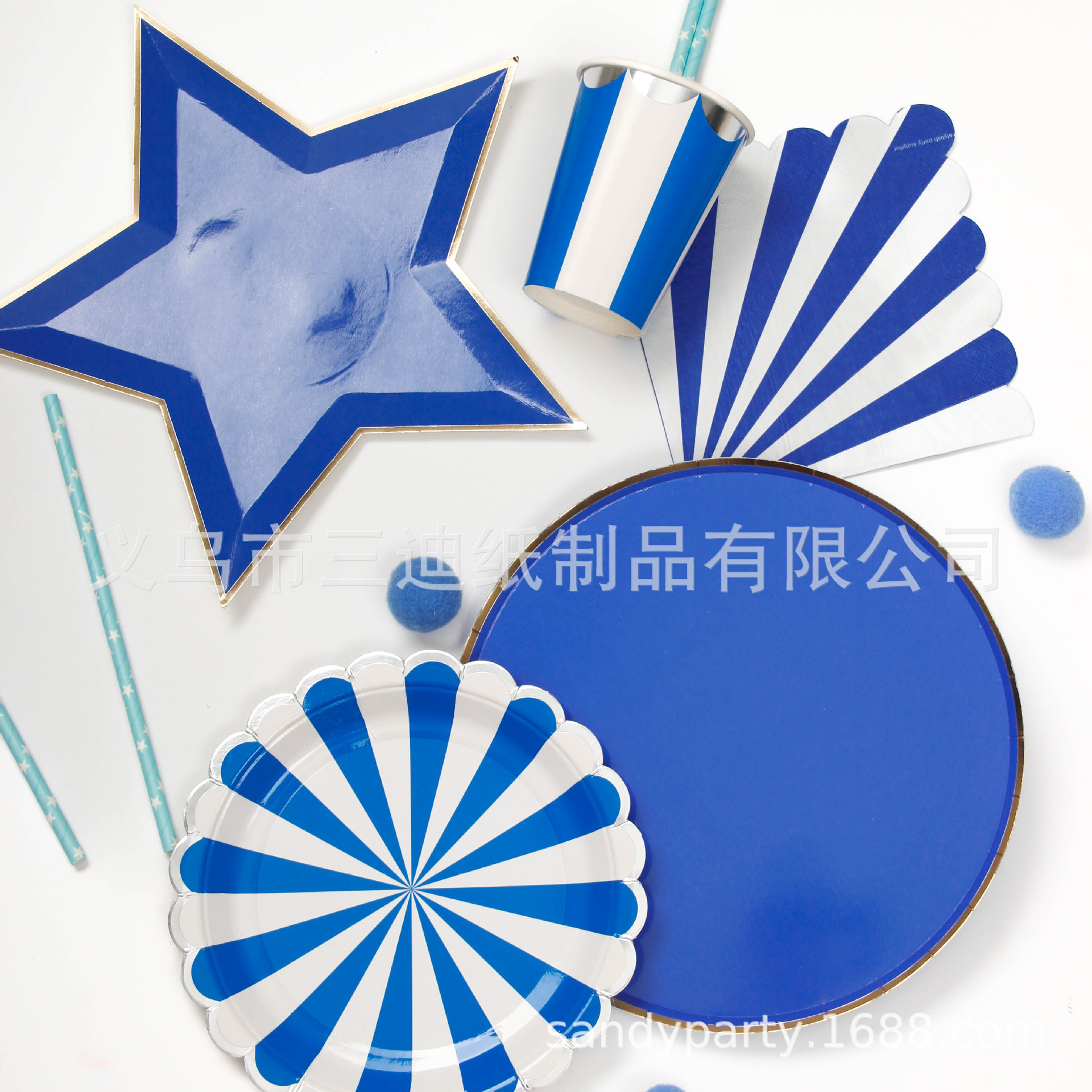 パーティーブルー洋式結婚式シリーズ食器紙皿紙コップティッシュ食器は国境を越えたパーティーセットに特化している