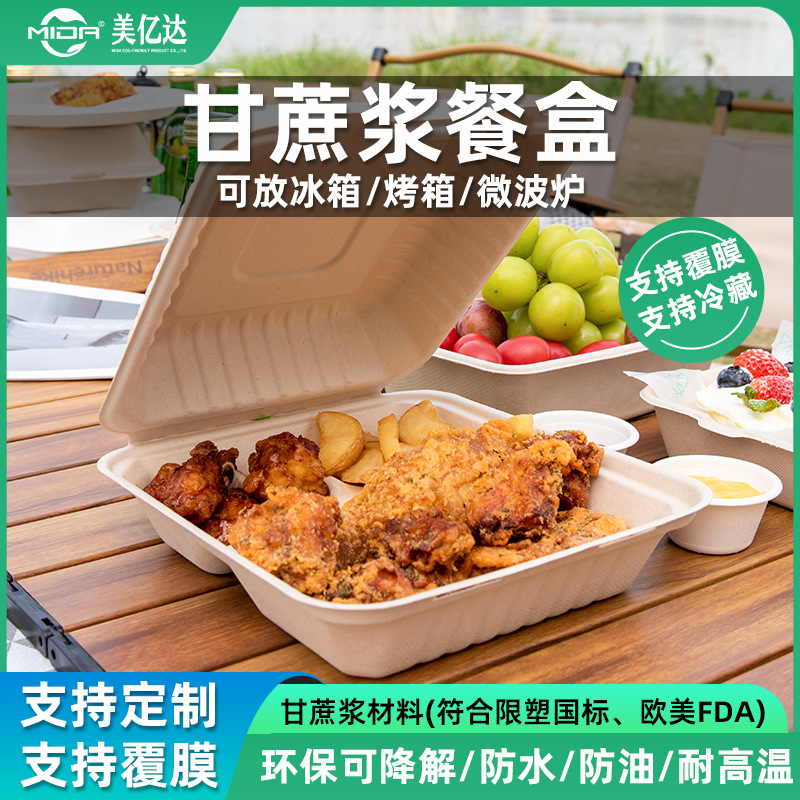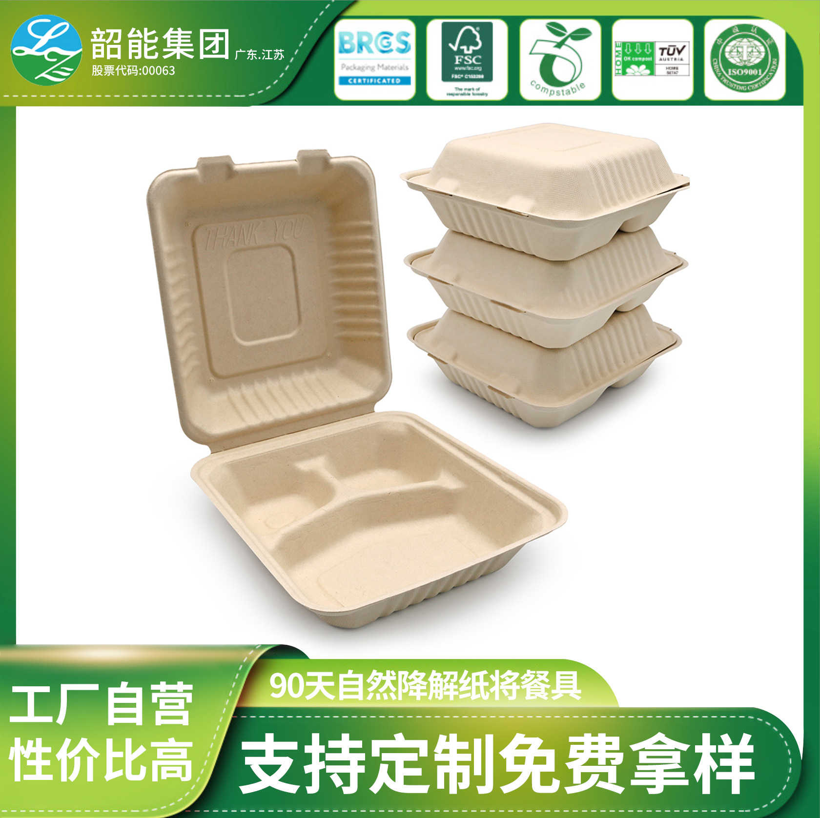 博勝環境保護使い捨て分解可能食器深浅角箱蓋原色サトウキビパルプご飯野菜盛放