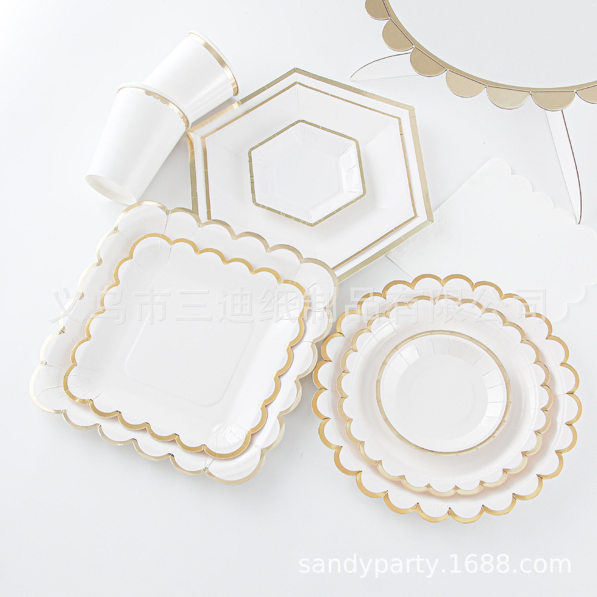 使い捨て紙皿箔押し誕生日ケーキ皿ピクニック春游携帯分解性食器セット紙皿紙コップ紙