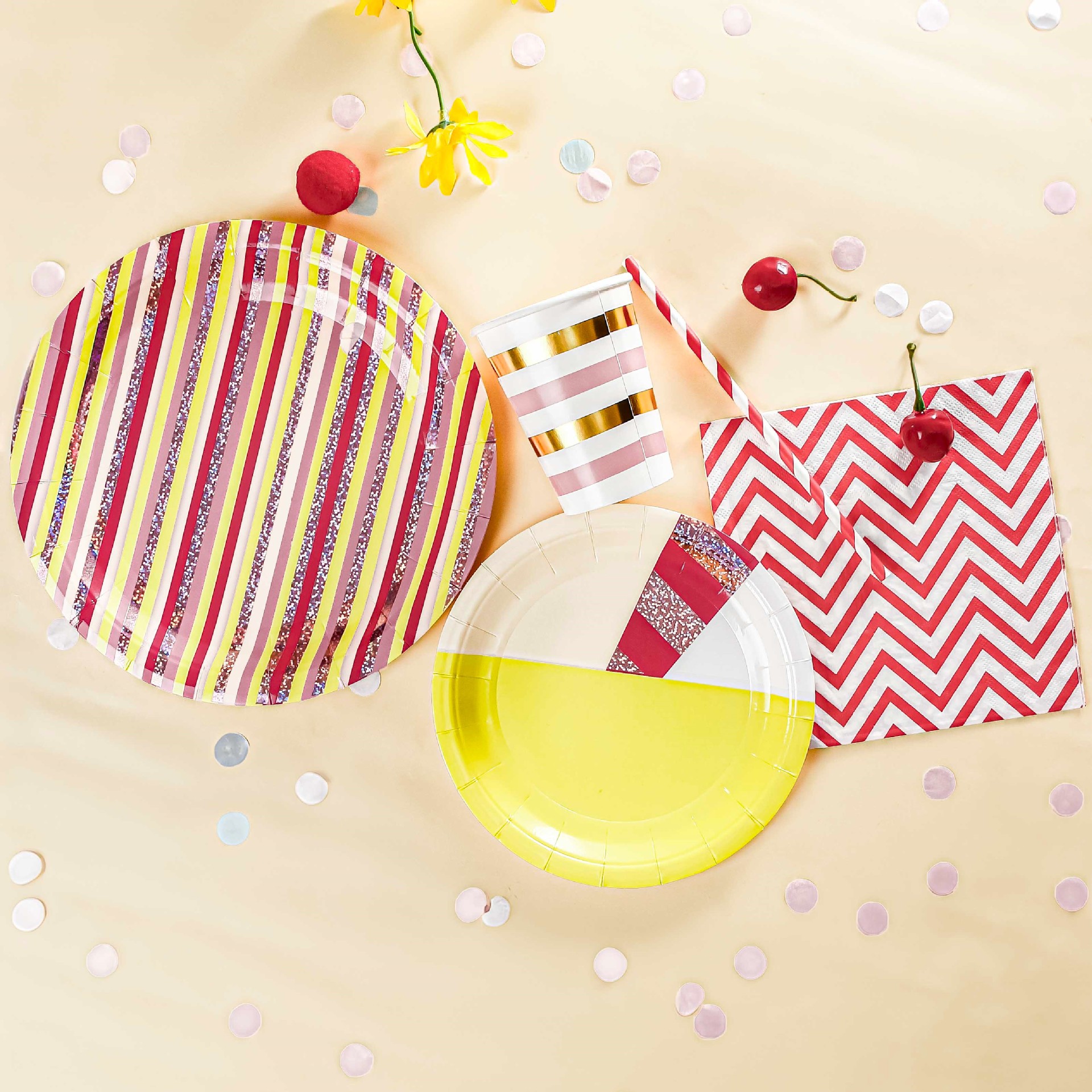 箔押し黄色レモン紙皿紙コップティッシュイースターパーティー紙皿使い捨てパーティー食器セット