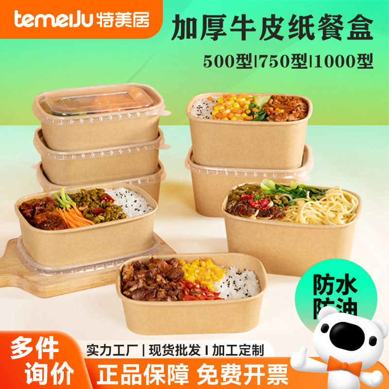 卸売ボウル、使い捨てクラフト紙包装箱、ランチボックス、紙ボウル、蓋付き厚手アウトドアキャンプ食器、家庭用環境保護