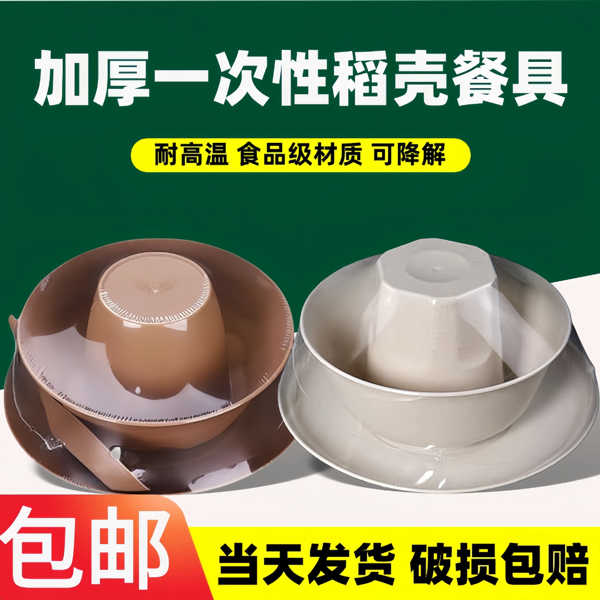使い捨て分解性籾殻コーンスターチ食器円形碗四角い皿スプーン出前会食鍋セット