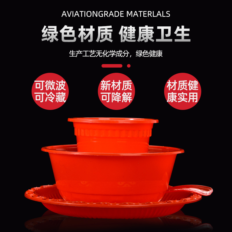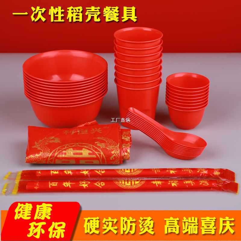 工場卸売り籾殻赤使い捨て食器セット結婚酒席高颜値セット食器4点セット