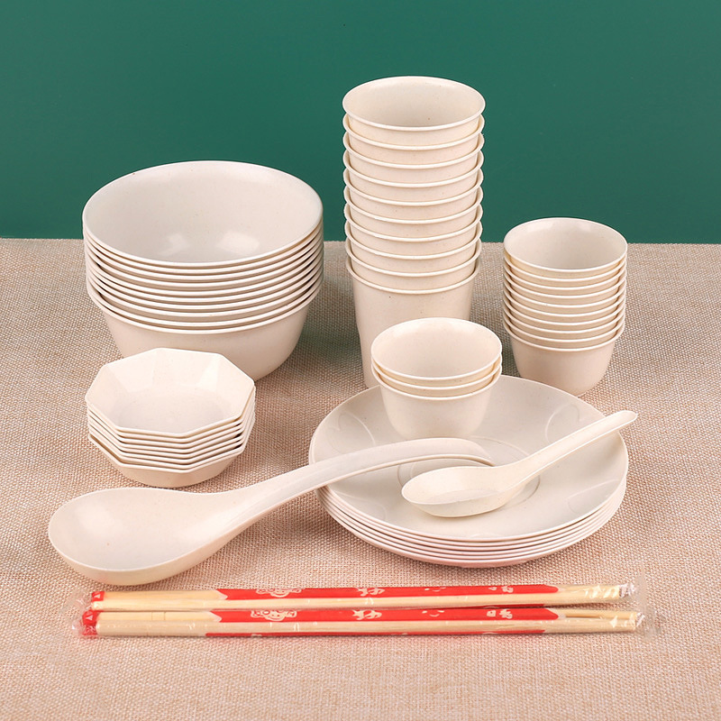 家庭用環境に優しい籾殻食器フルセット 10人用 7点セット 高温耐性 キャンプ ピクニック 使い捨て食器工場