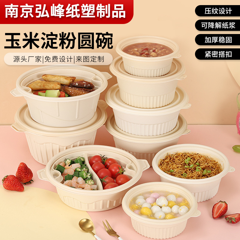 トウモロコシのデンプンの弁当箱は使い捨てで分解できます。