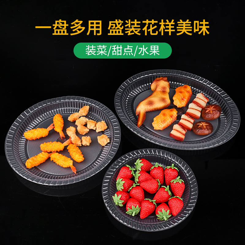 F ^ 厚手の使い捨て皿プラスチック皿透明酒席果物円形家庭用料理皿ピクニックパーティー料理