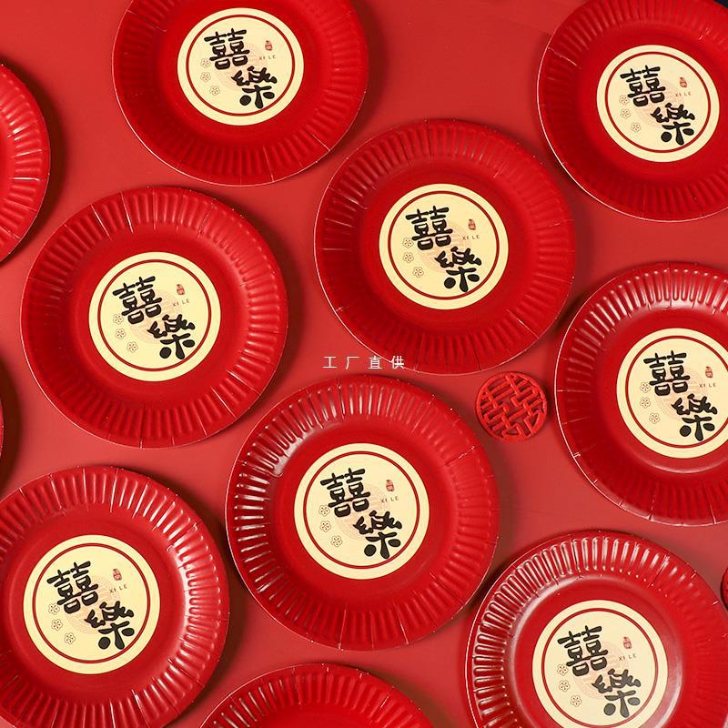 結婚使い捨て皿果物皿赤い食器喜皿結婚祝い紙皿果物皿乾燥果糖皿