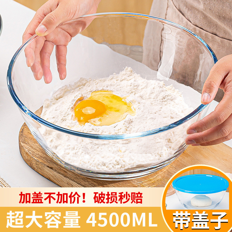 耐熱透明ガラスボウル、厚みのある洗面器、電子レンジ専用高ホウケイ酸ガラス家庭用大型サラダボウル