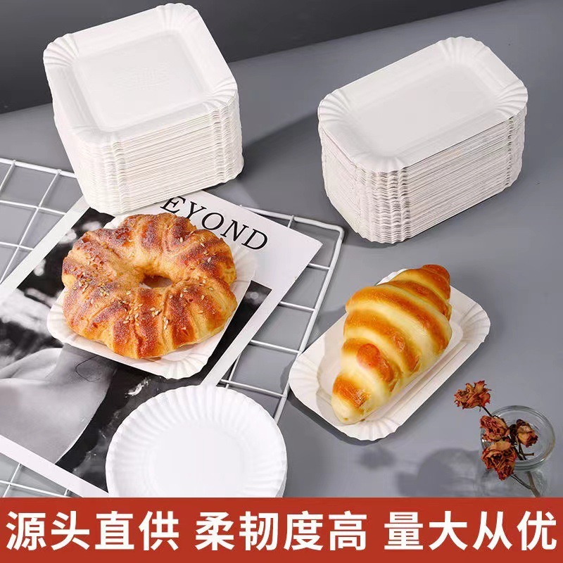 使い捨て紙皿、厚みのある正方形のパルプ皿、丸い紙皿、長方形の紙皿、ケーキプレート