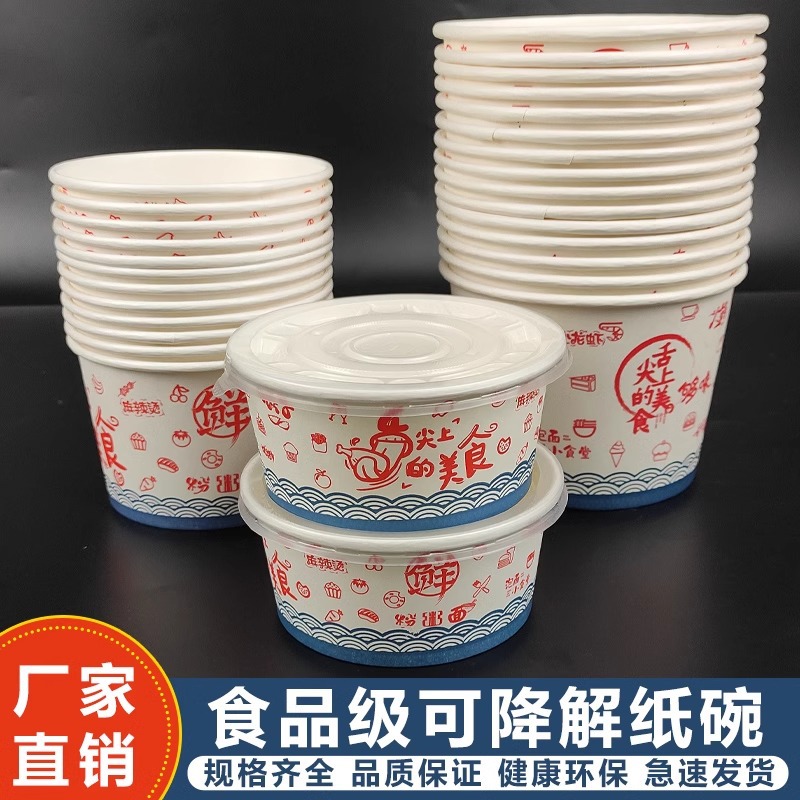 使い捨ての紙碗の屋台の専用の円形の蓋付きの軽食のテイクアウトの包装箱の業務用の箱の紙碗は一つずつ決まります。