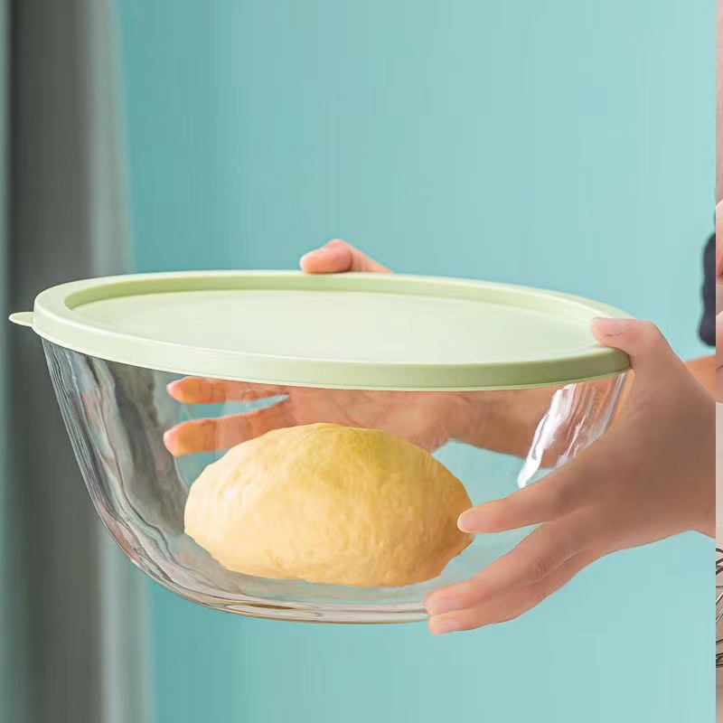 ガラスと洗面器家庭用ガラスボウル蓋付き大型サラダ増粘ケーキ透明混練小麦粉新しい