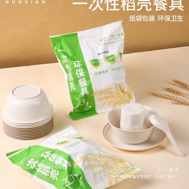 卸売り使い捨て籾殻食器健康環境保護食品級厚いカップスプーン食器セット家庭用キャンプ食器