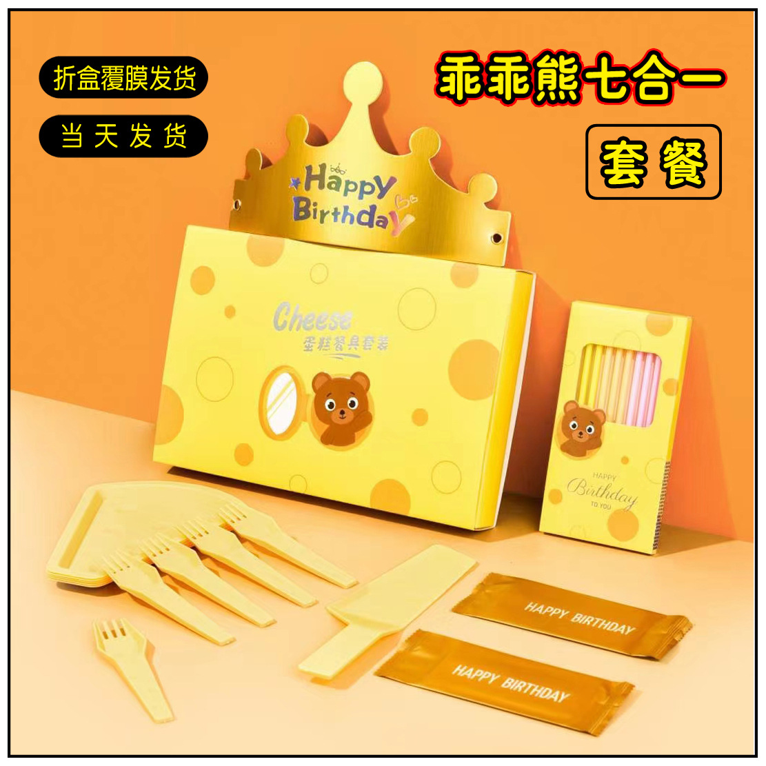 誕生日ケーキ食器セット使い捨て焙煎四合一ケーキナイフフォーク皿セットセットデザート食器