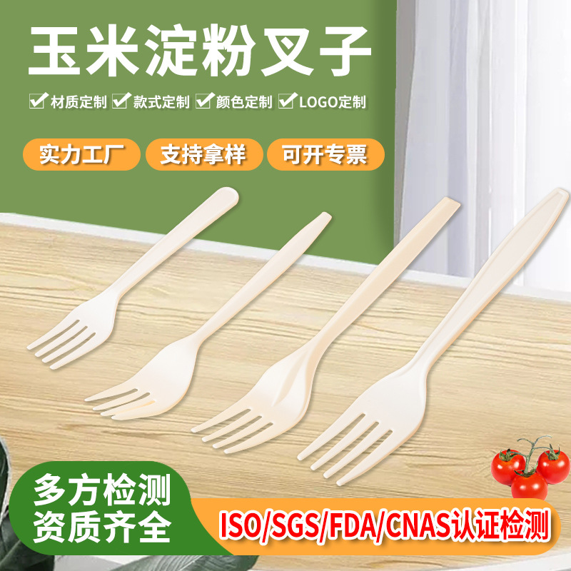 外国貿易工場卸売トウモロコシ澱粉使い捨てフォーク、生分解性増粘包装ピザケーキフォーク食器