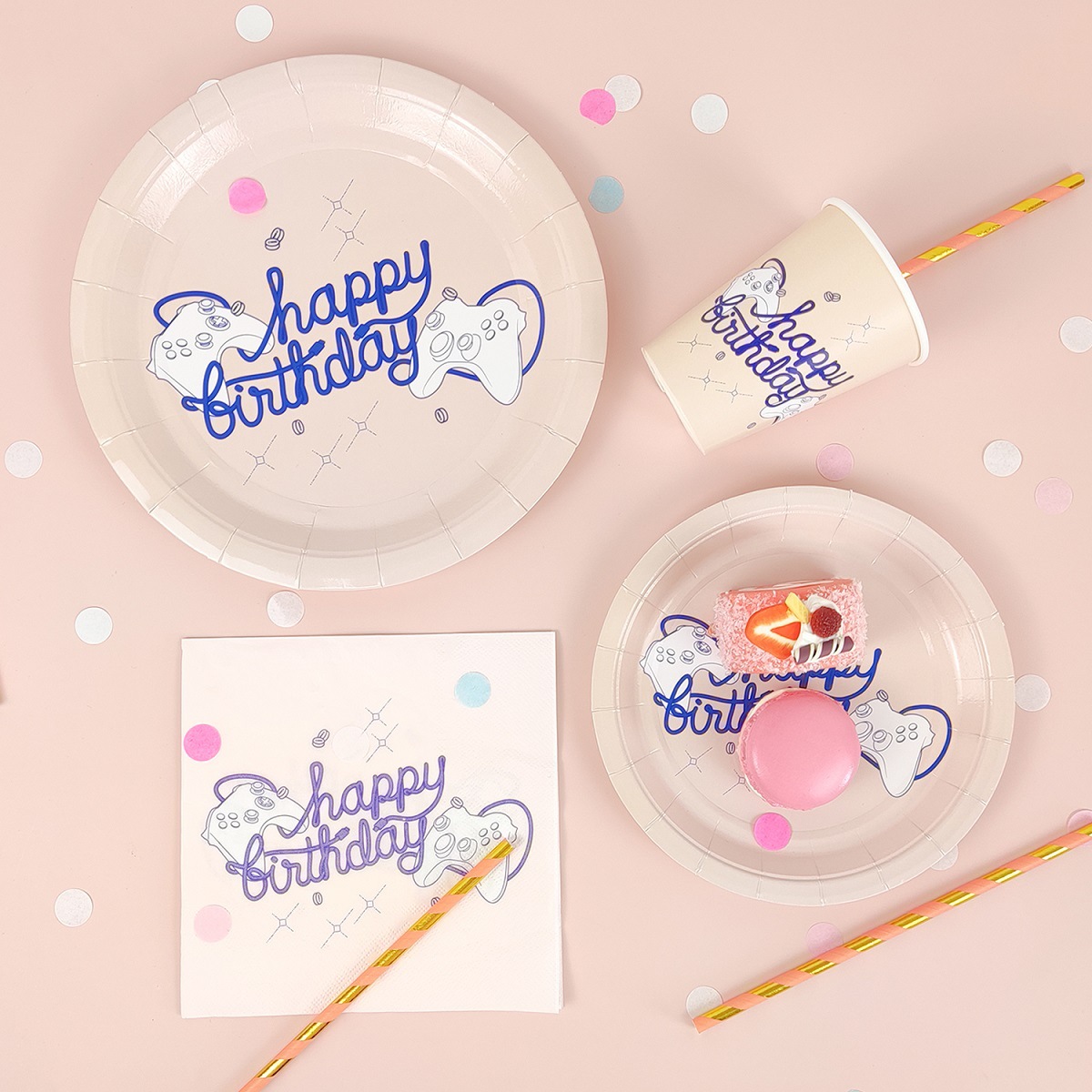 使い捨て食事皿ピクニック皿ピンクHAPPY BITHDAYゲームハンドル男の子パーティーデザートテーブル食器