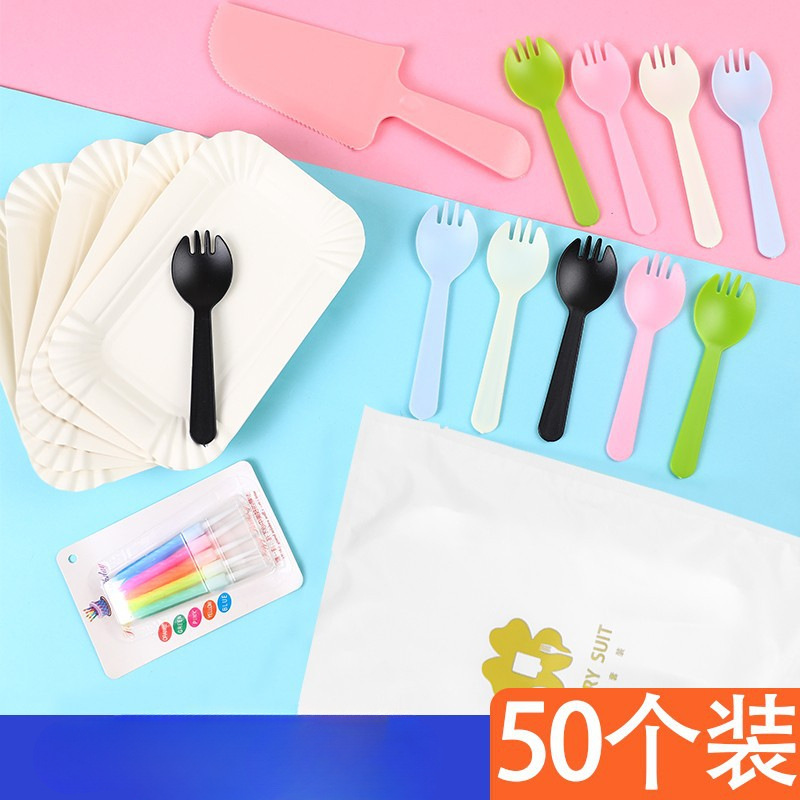 ペーパーマネージャー誕生日ケーキカトラリー使い捨て厚みのある組み合わせセットプラスチックディナープレートベーキングフォーク