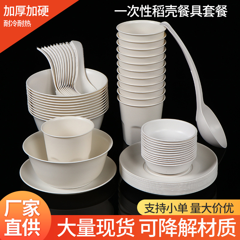 分解性ボウル皿カップ箸スプーン5点セット卸売り家庭用レストラン結婚酒席籾殻使い捨て食器