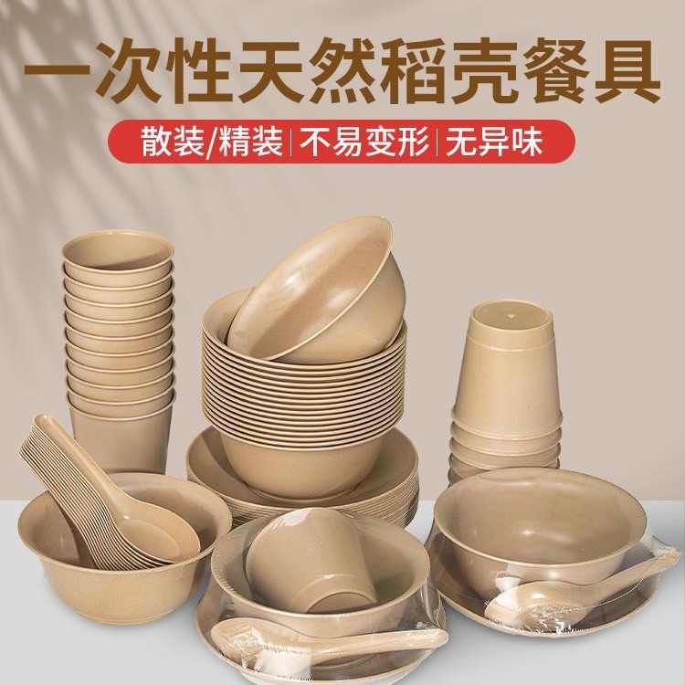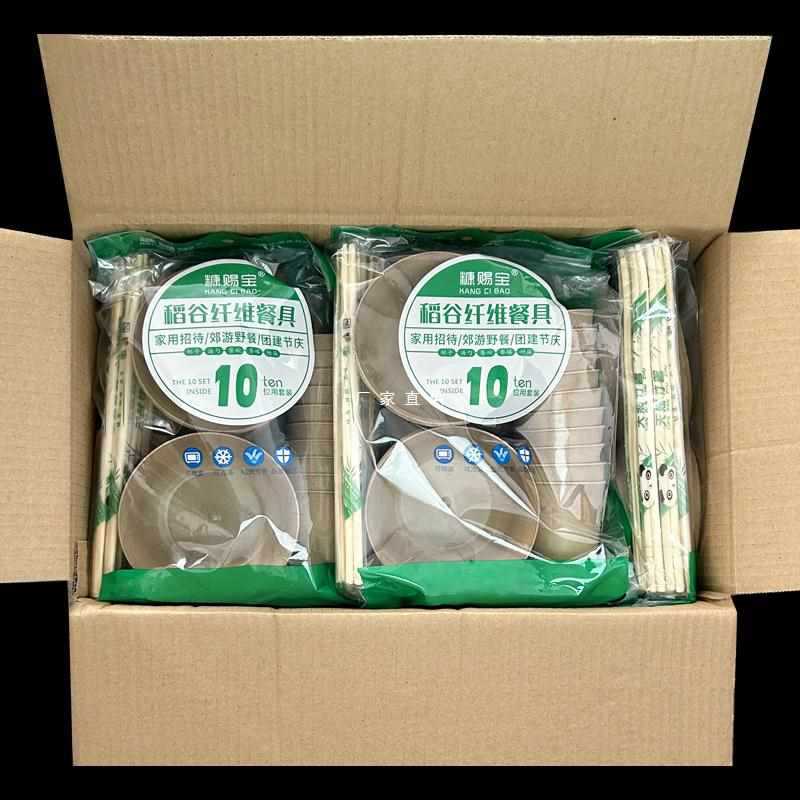 籾殻使い捨て食器食器箸セットスプーンコップ分解可能食品級会食家庭用ピクニック10人分