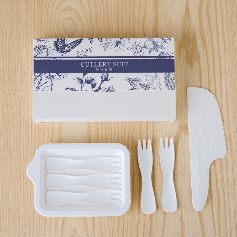 誕生日ケーキ紙ナイフフォーク皿セット使い捨て皿長方皿分解可能食器三合一ギフトボックスセット