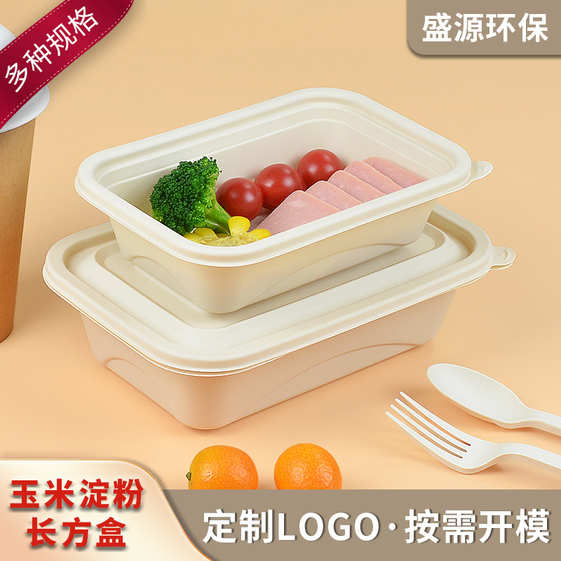 現物のトウモロコシのでんぷんの長方形の弁当箱の使い捨ての環境保護の分解性の食器の軽食の弁当の出前の包装箱