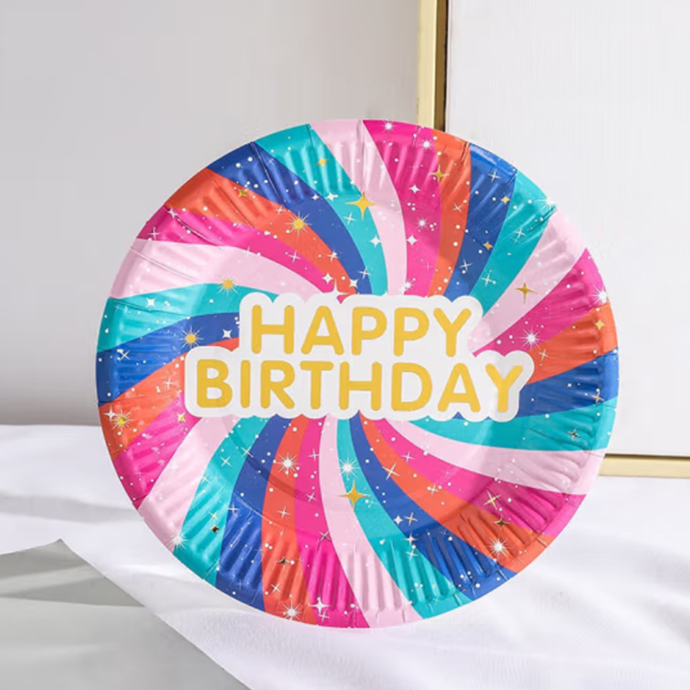 新品レインボー使い捨て食器誕生日パーティーパーティーパーティー用品紙皿紙コップティッシュセット4点セット