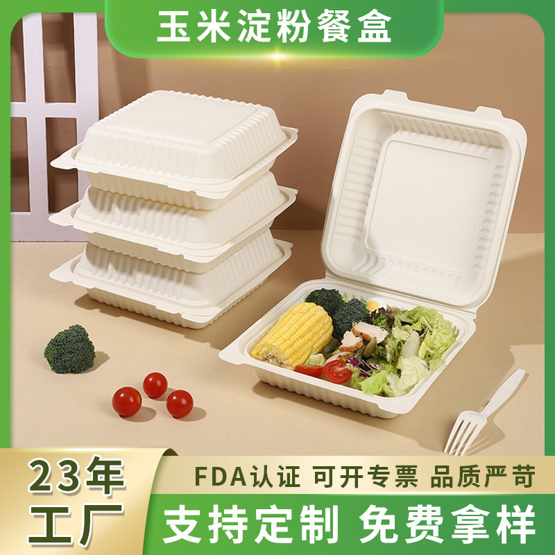 使い捨て弁当箱現物六格食品級強化弁当箱分解可能トウモロコシ澱粉販売包装箱